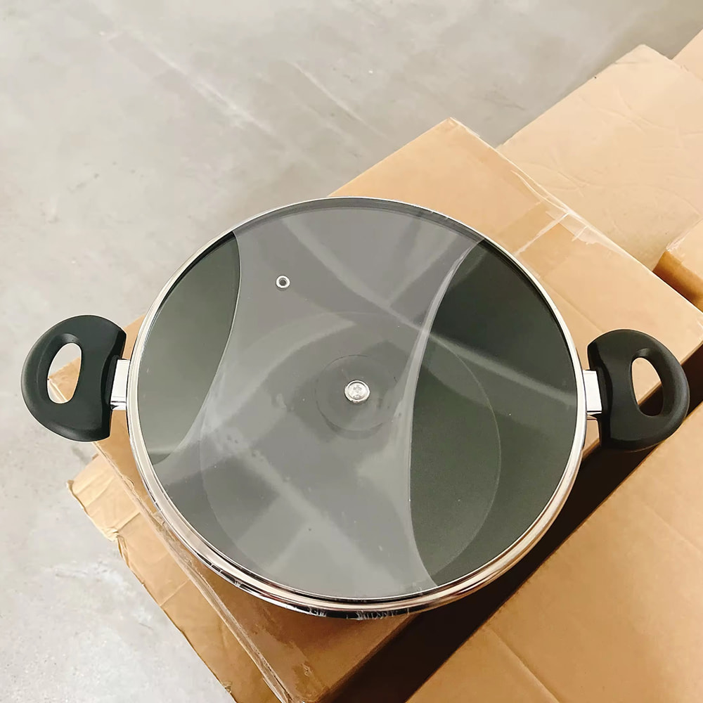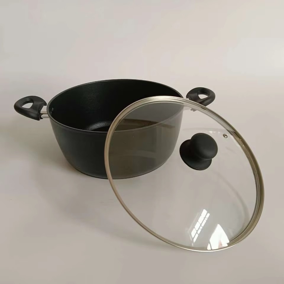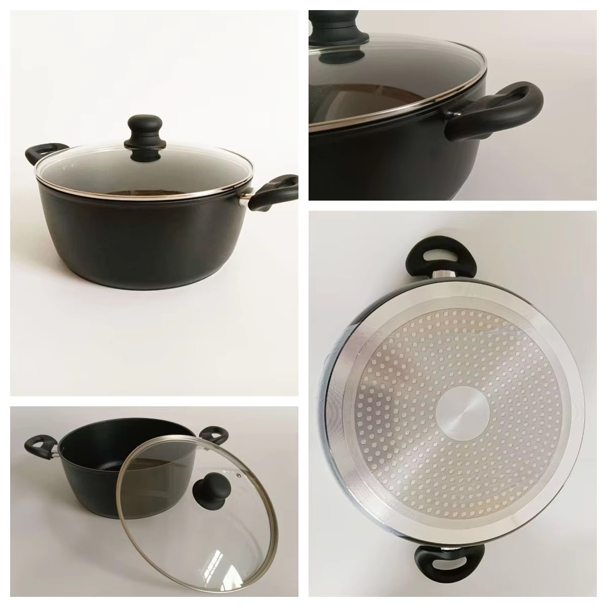 กระทะนอนสติ๊ก กระทะ หม้อปรุงอาหาร หม้อและกระทะอลูมิเนียม ชุดเครื่องครัว พอร์ตซุปพร้อมฝาแก้ว Wholesale