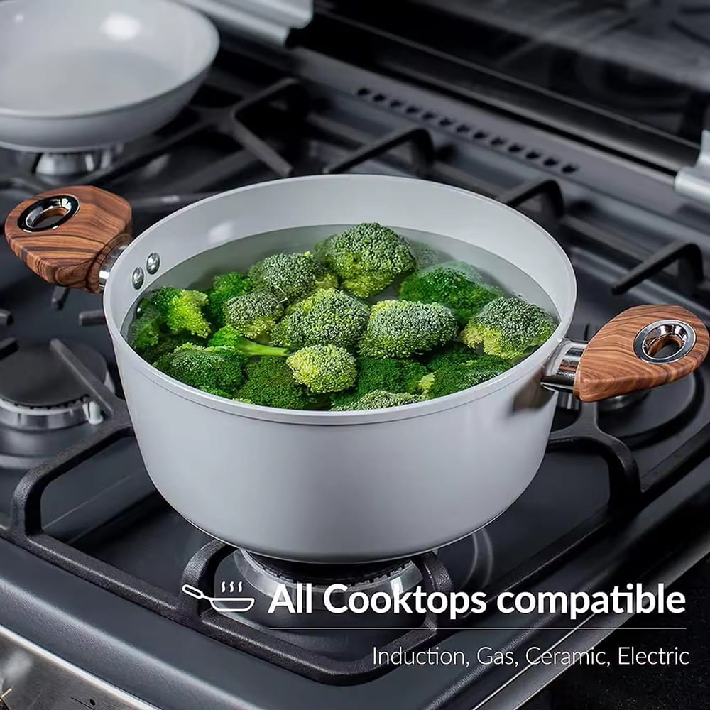 ชุดหม้อปรุงอาหารอลูมิเนียมปลอมแปลงสำหรับเตาอบแบบ nonstick พร้อมฝาแก้ว