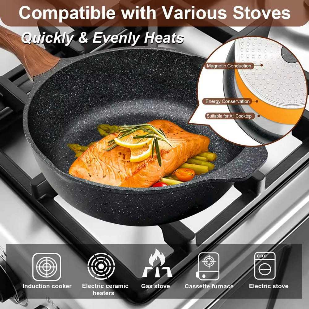 โลโก้ที่กำหนดเองขนาดเต็มกระทะนอนสติ๊กขนาดใหญ่ขนาดใหญ่พร้อมที่จับไม้ Wholesale